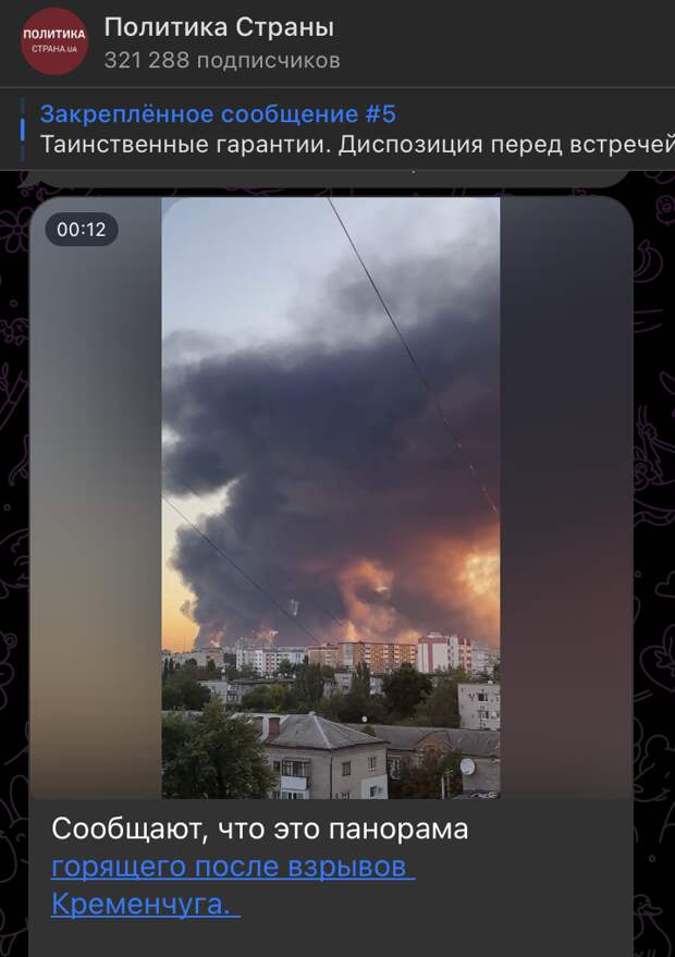 По данным украинских каналов, удары по нефтепроводам стали ответом на недавние атаки со стороны ВСУ на русский нефтепровод "Дружба", что привело к приостановке поставок нефти в Венгрию. В ответ Россия как раз и активизировала свои действия, нанеся удары по стратегическим объектам в Кременчуге и Лубнах.