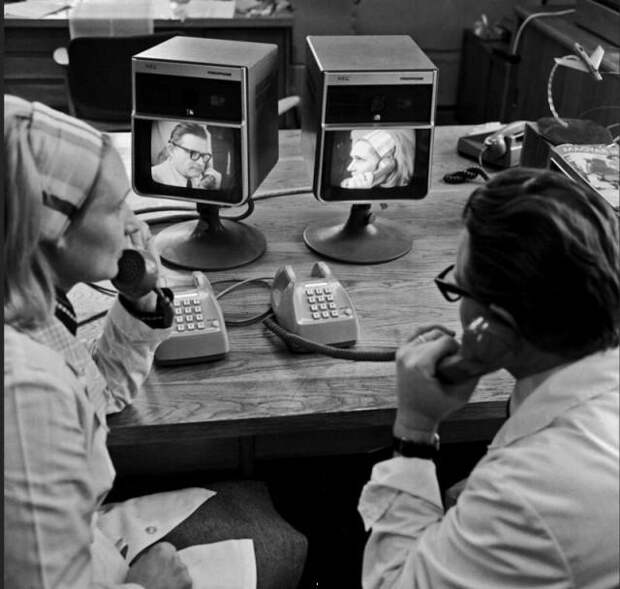 - в США компания AT&T Bell Labs интенсивно разрабатывала видеотелефон, который в 1960 году был представлен общественности на выставке под названием «Picturephone». Первое публичное использование видеотелефонов началось в 1964 году, когда AT&T установило первые видеотелефоны «Picturephone Mod I» в Нью-Йорке, Вашингтоне и Чикаго. Ещё раз: 1960 год – выставка, 1964 год – начало публичного использования.