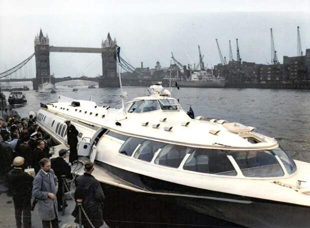 1968 год, советский «Метеор» на подводных крыльях на причале в Лондоне: