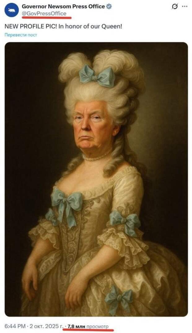 Губернатор Калифорнии Гэвин Ньюсом, представляющий Демократическую партию, провозгласил себя "лидером свободного мира" на фоне приостановки работы федерального правительства США. Это заявление было размещено в официальном аккаунте пресс-службы губернатора в социальной сети.