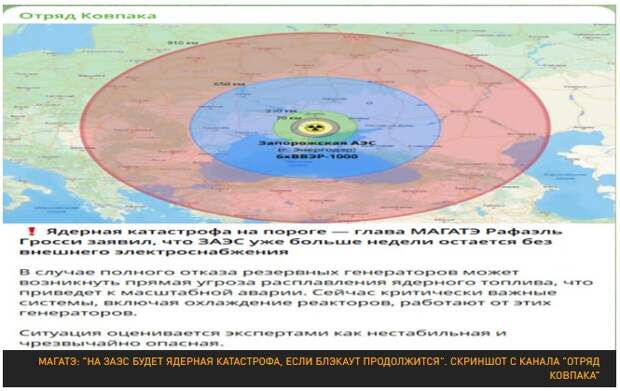 Зеленский не переставал публично угрожать Москве ракетным ударом и блэкаутом, а дроны ВСУ летели в сторону ЗАЭС, буквально приблизив ядерный апокалипсис. Как сообщили в МАГАТЭ, "на ЗАЭС будет ядерная катастрофа, если блэкаут продолжится: топлива на резервных дизель-генераторах хватит лишь на 10 дней". В случае полного отключения резервных систем может возникнуть угроза расплавления ядерного топлива. При этом директор по коммуникациям станции Яшина сообщила, что восстановление электроснабжения ЗАЭС по линии "Днепровская" временно невозможно из-за обстрелов ВСУ.