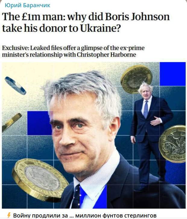 Отвратительно!!! Английский премьер получил лимон фунтов и пролоббировал войну Украины против России. Ну это же не просто цинизм, это дьявольщина (прости Господи за упоминание). Мы воюем с самим Лукавым!