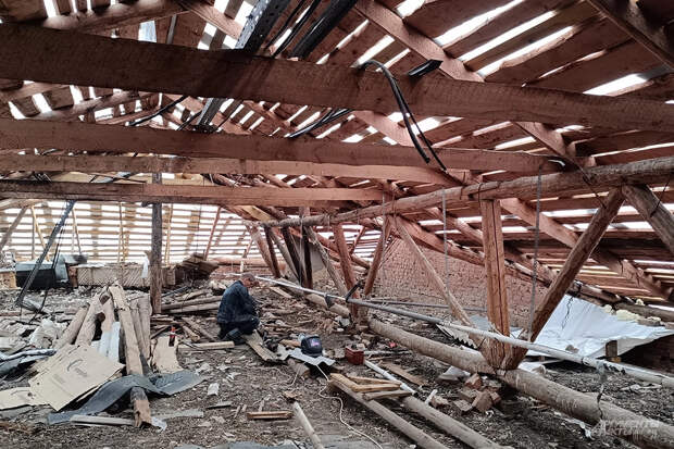 «Знаете, что написали? 60% разрушений отопительной и газовой системы, 60% несущих конструкций, 60% разрушений лестничных пролётов, 85% разрушений кровли, — перечисляет Тарасенко. — Пойдёмте, покажу вам все «разрушения».