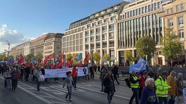 В столице Германии проходит протест против вступления Германии в конфликт и конфронтацию с РФ. Акцию проводят в день германского единства под девизом «Войны - больше никогда».