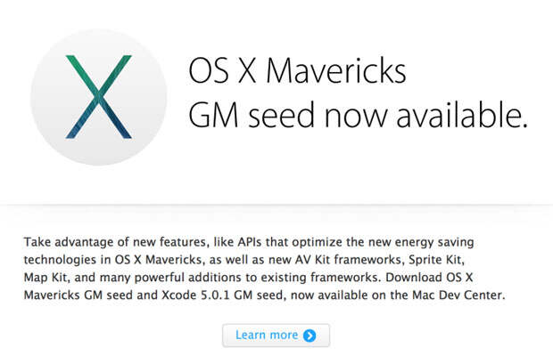 Apple выпустила OS X Mavericks Golden Master (GM) для разработчиков.