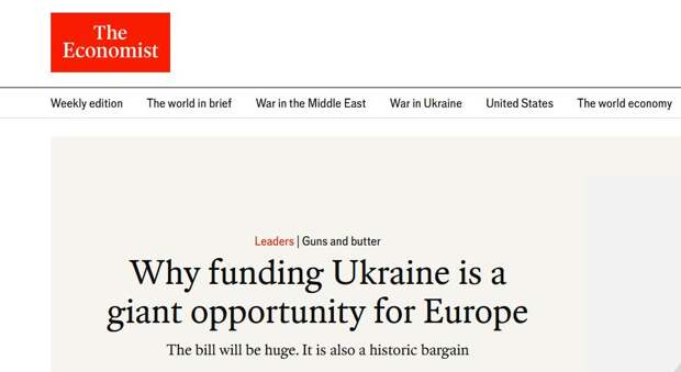 А британский журнал The Economist подхватывает – за свою безопасность следует платить, и если европейцы хотят спокойно спать, в ближайшие четыре года им придётся тратить на Украину в два раза больше средств, чем сегодня. Экономия на вооружении ВСУ приведёт к тому, что европейцам уже в ближайшее время придётся сидеть в подвалах, пугает журнал тех, кто не осмеливается конфисковать российские активы и не хочет выворачивать карманы граждан.