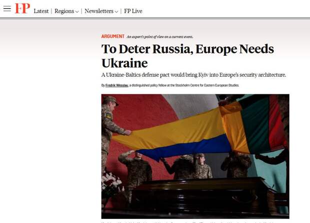 Да уж, фантасты рыдают в стороне. Украина терпит поражение за поражением на поле боя, а тут FP подстрекает европейцев к тому, что они должны раскошелиться на «демонстрацию гарантий безопасности» в виде украинско-прибалтийского пакта. Это шутка такая?
